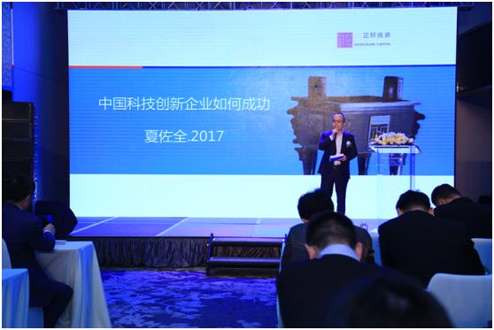 接下来由正轩投资董事长夏佐全先生做主题演讲—— “中国科技创新企业如何成功”。夏总回顾了1996年和王传福,吕向阳一起创立比亚迪历程,一路走来深感创业艰辛和企业家的不易,同时也意识到企业家肩负的社会责任,夏总从五个方面阐述了创新企业成功之道:企业家和企业家精神是科技创新的灵魂;如何制定公司的发展战略;技术创新是科技性公司持续发展的动力;良好的公司治理结构是一个科技公司发展的最重要的基础;及科技公司的融资策略。